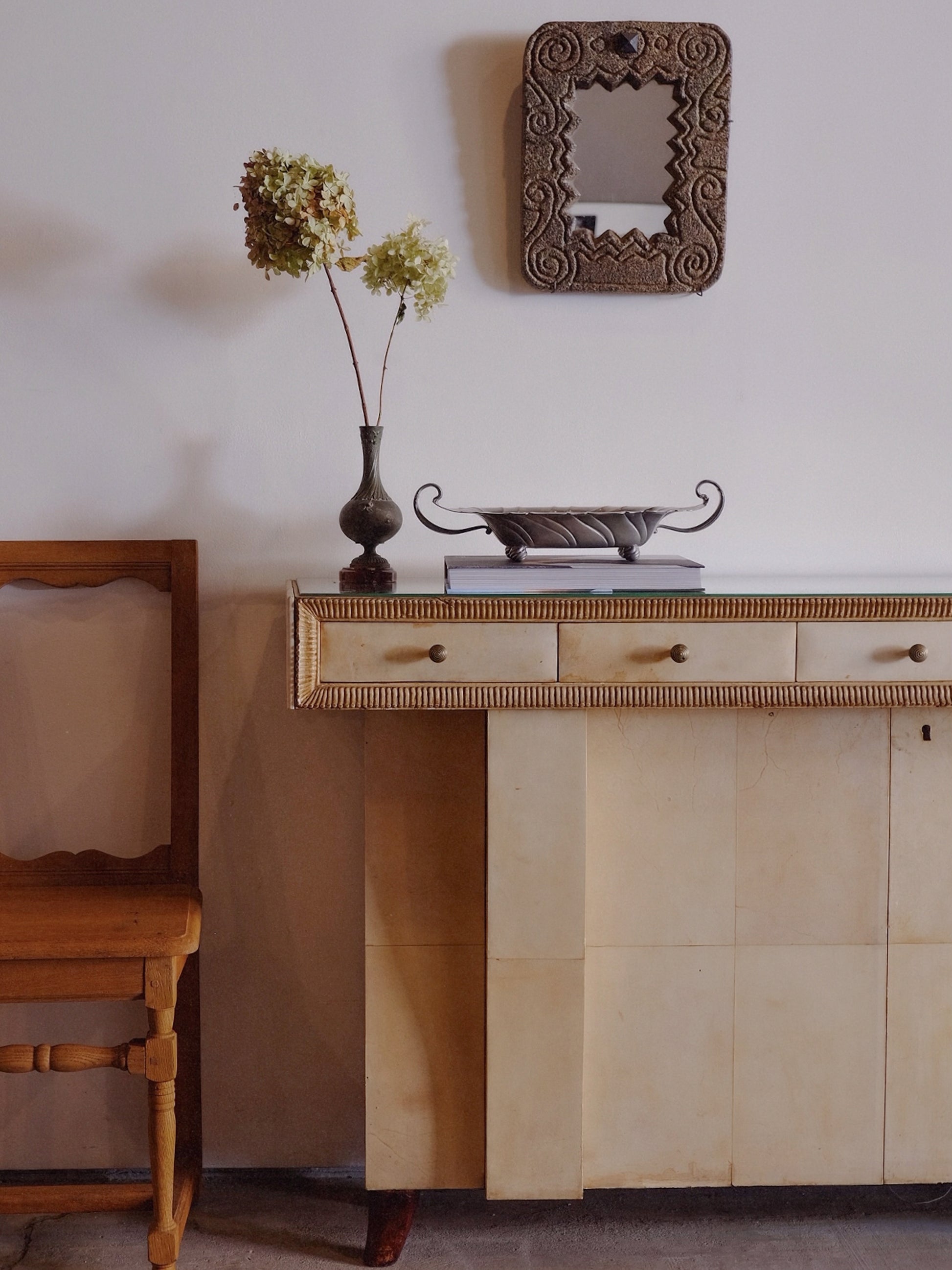 Engraved stone mirror